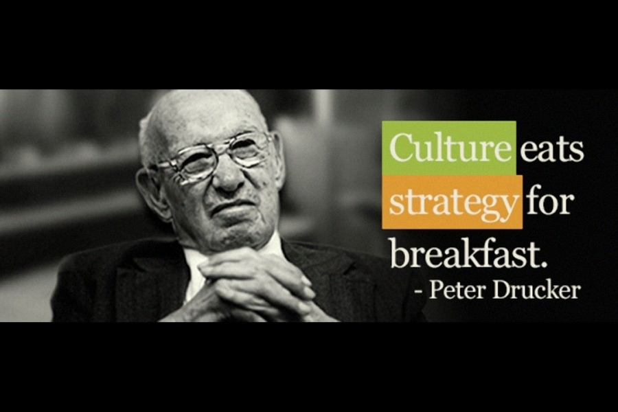 Peter Drucker'ın "Kültür stratejiyi kahvaltı olarak yer" ifadesini paylaşıyor birileri.